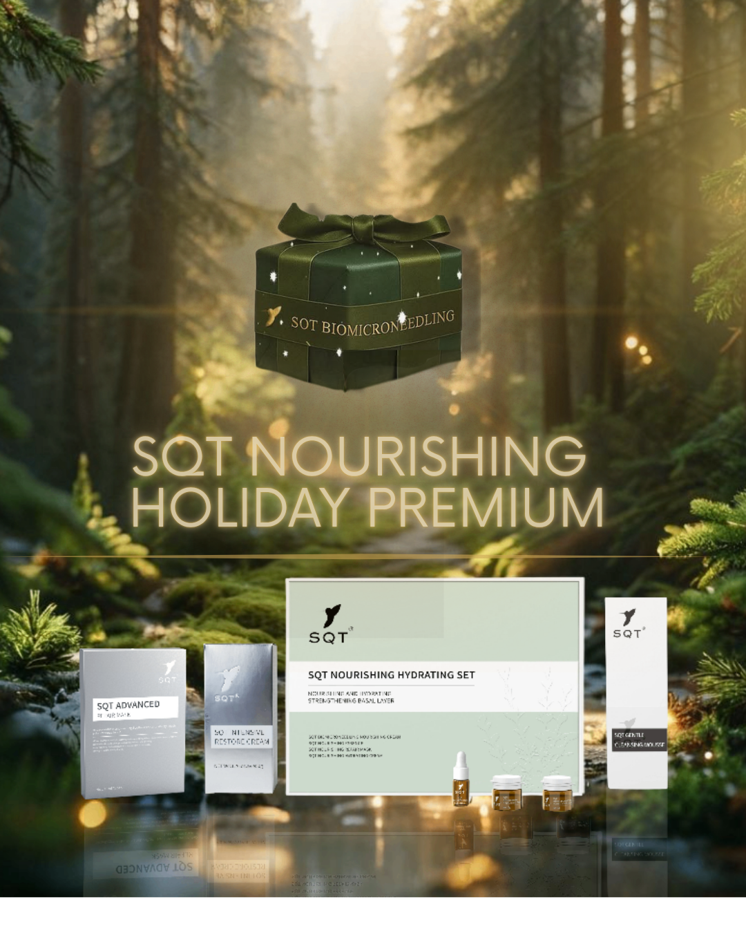 🟢3 SQT® NOURISHING SET  → Tratamiento profesional equilibrante para pieles con barrera alterada.   🎁 REGALOS INCLUIDOS EN LA EDICIÓN HOLIDAY PREMIUM   🟢 1 caja de Advanced Repair Mask — DE REGALO → Mascarilla profesional calmante y reparadora para potenciar la hidratación. 🟢 1 Gentle Cleansing Foam — DE REGALO → Limpieza profesional anfótera, con textura suave y preformulada. 🟢 1 Intense Restorative Cream — DE REGALO → Crema restauradora profunda con efecto calmante y refuerzo de la elasticidad. 🟢 Ritual profesional en vídeo — DE REGALO → Acceso exclusivo a un ritual guiado para optimizar el protocolo, mejorar la técnica y elevar la experiencia en cabina.   Tiempo de aplicación: 45 min 🔹 VENTA EXCLUSIVA a profesionales certificados en SQT®