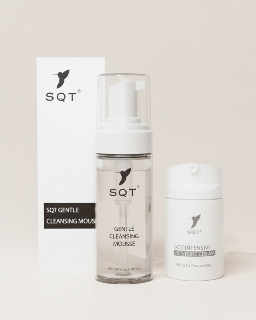 El Pack Ten Mix SQT® incluye 5 Gentle Cleansing Foam + 5 Intense Restorative Cream, con 1 Gentle Cleansing Foam de regalo. La forma más rentable de reponer básicos de cuidado en casa.