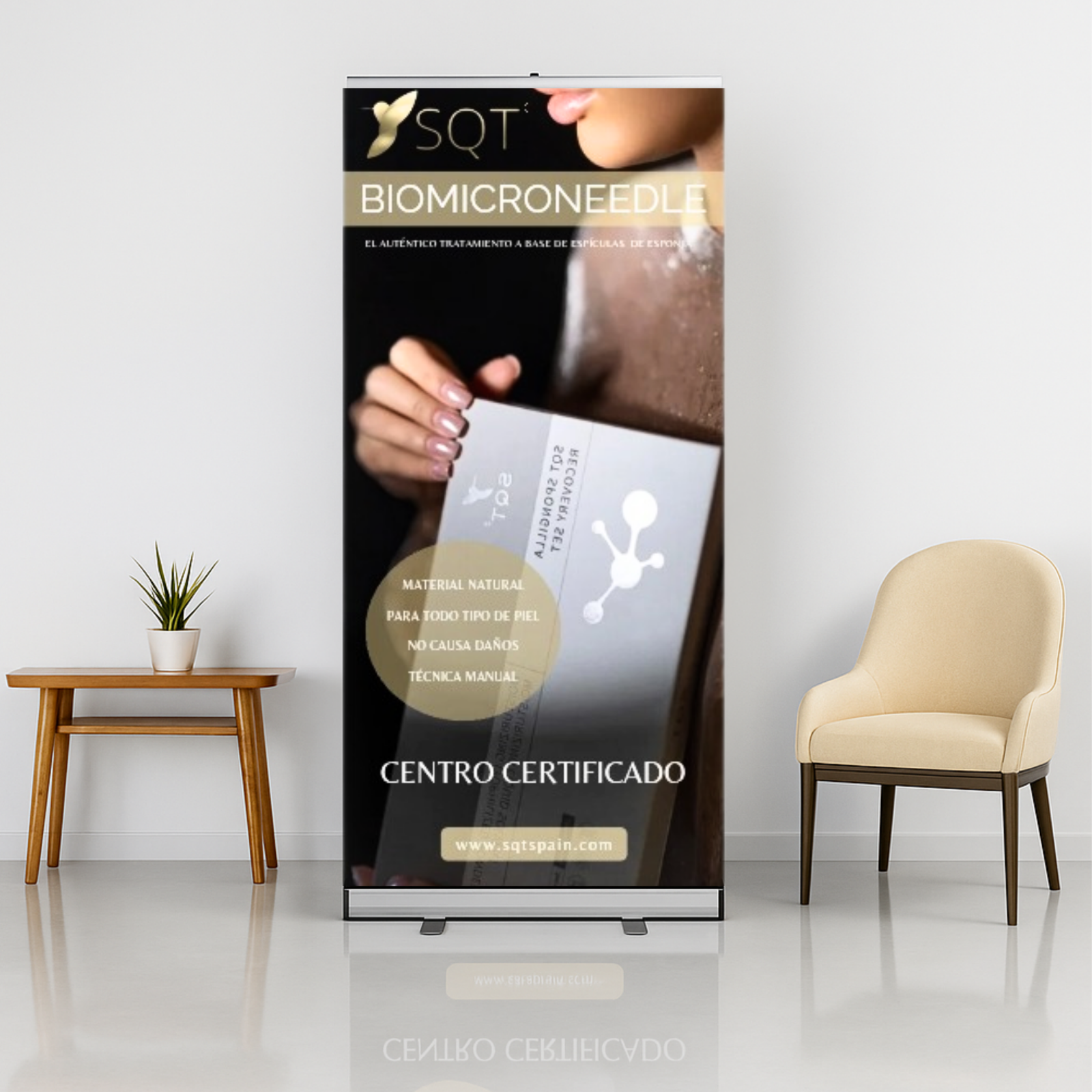 Refuerza tu imagen profesional desde el primer impacto como centro certificado SQT® y eleva la estética de tu centro con un soporte visual ligero, elegante y fácil de instalar.